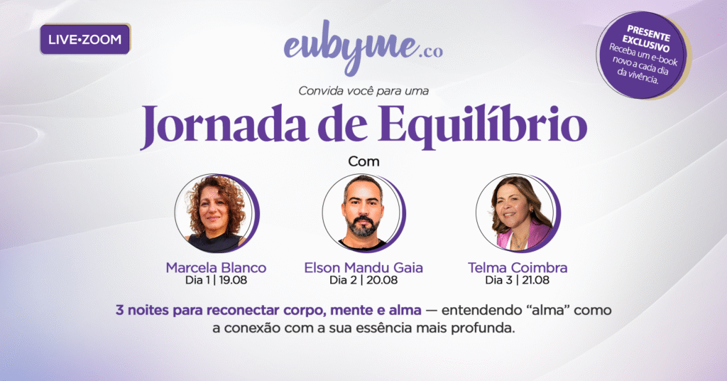 Jornada de Equilíbrio é um convite para pausar, respirar e se reconectar com você mesma. Durante três noites, nossos facilitadores expertises